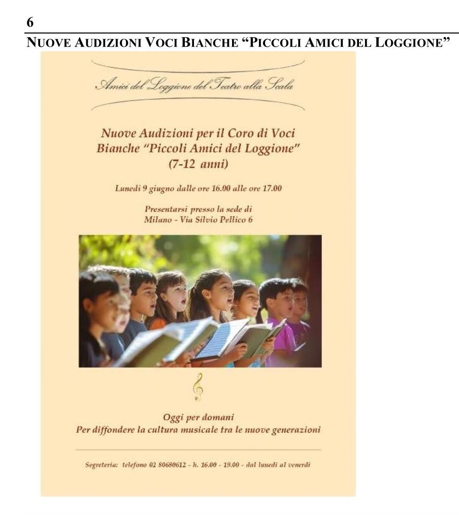 15/11/25 Milano Coro dei Piccoli Amici del Loggione del Teatro alla Scala di Milano, nuova iniziativa (cerimonia di conferimento 11/1/2026)