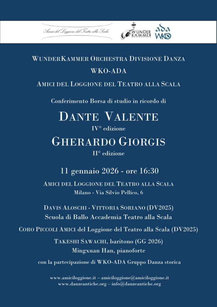 Conferimenti Borse di Studio Dante Valente (anno 2025, IV° edizione) 11 gennaio 2026 Amici del Loggione del Teatro alla Scala